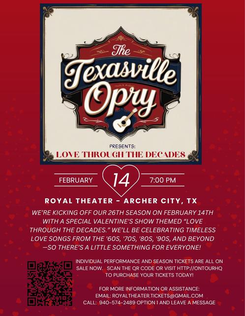 Since its reopening in 2000, the Texasville Opry, Late Week Lazy Boy Supper Club, live music, and a variety of plays have garnered stellar reviews for their authentic, small town charm, creativity and talent.